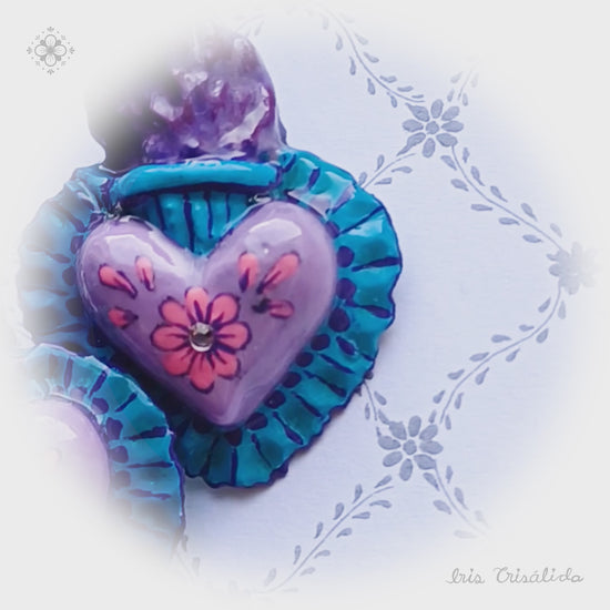 Hearts aflame that will never turn off. These papier-mâché earrings are designed to catch the eye.