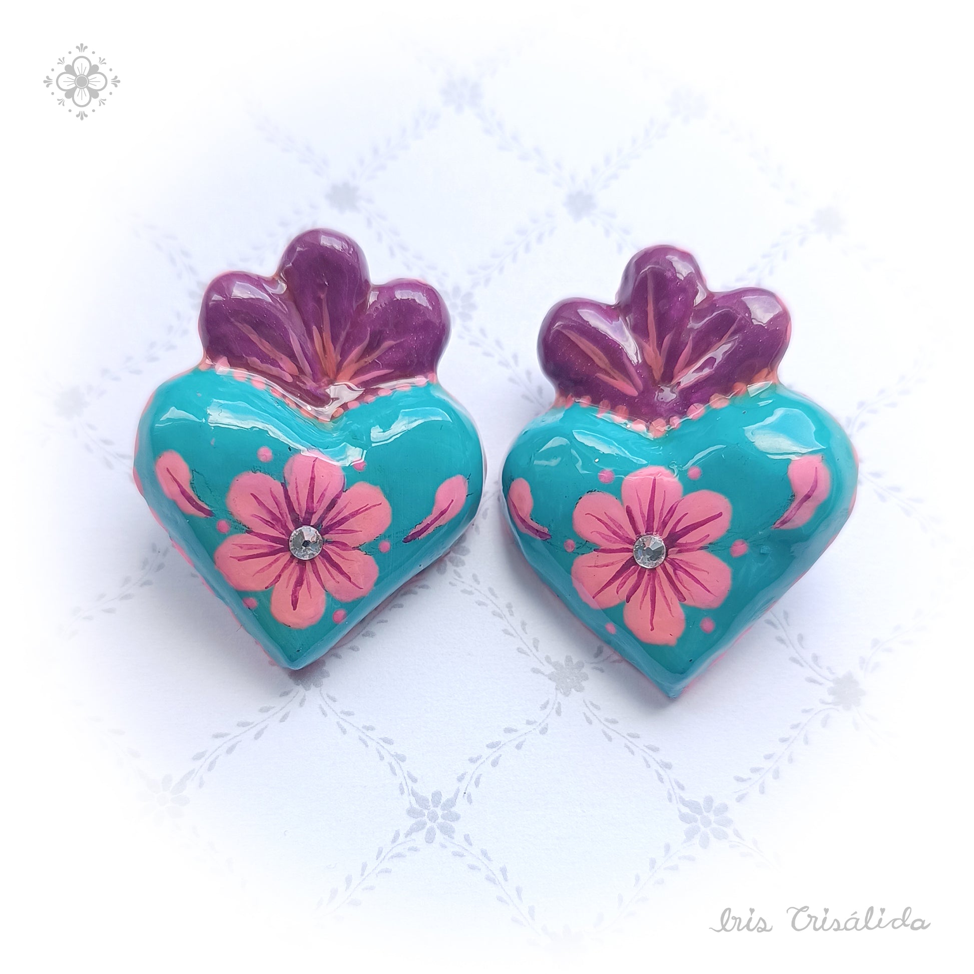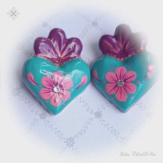 Inspired by the charm of devotional hearts, these papier-mâché earrings are designed to catch the eye.