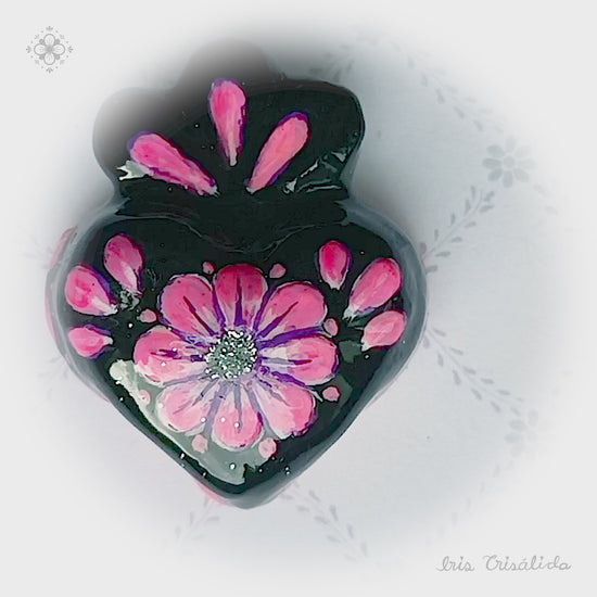Inspired by the charm of devotional hearts, this papier-mâché pendant is designed to catch the eye.