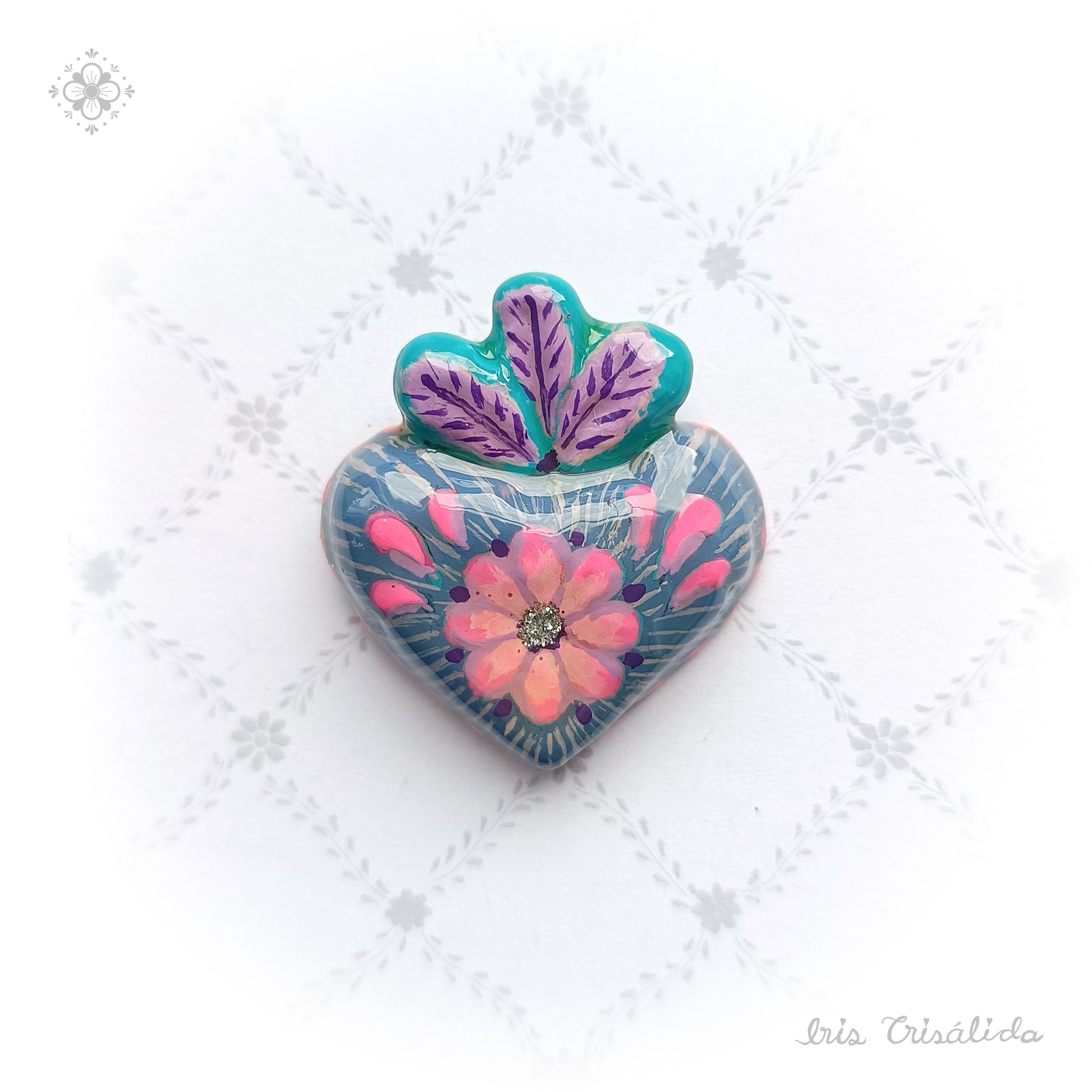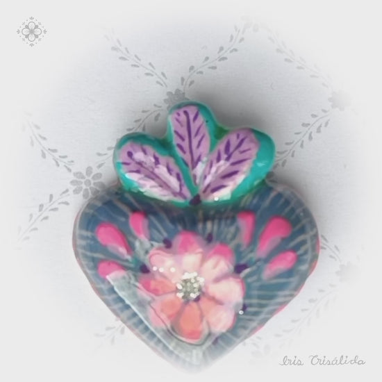 Inspired by the charm of devotional hearts, this papier-mâché pendant is designed to catch the eye.