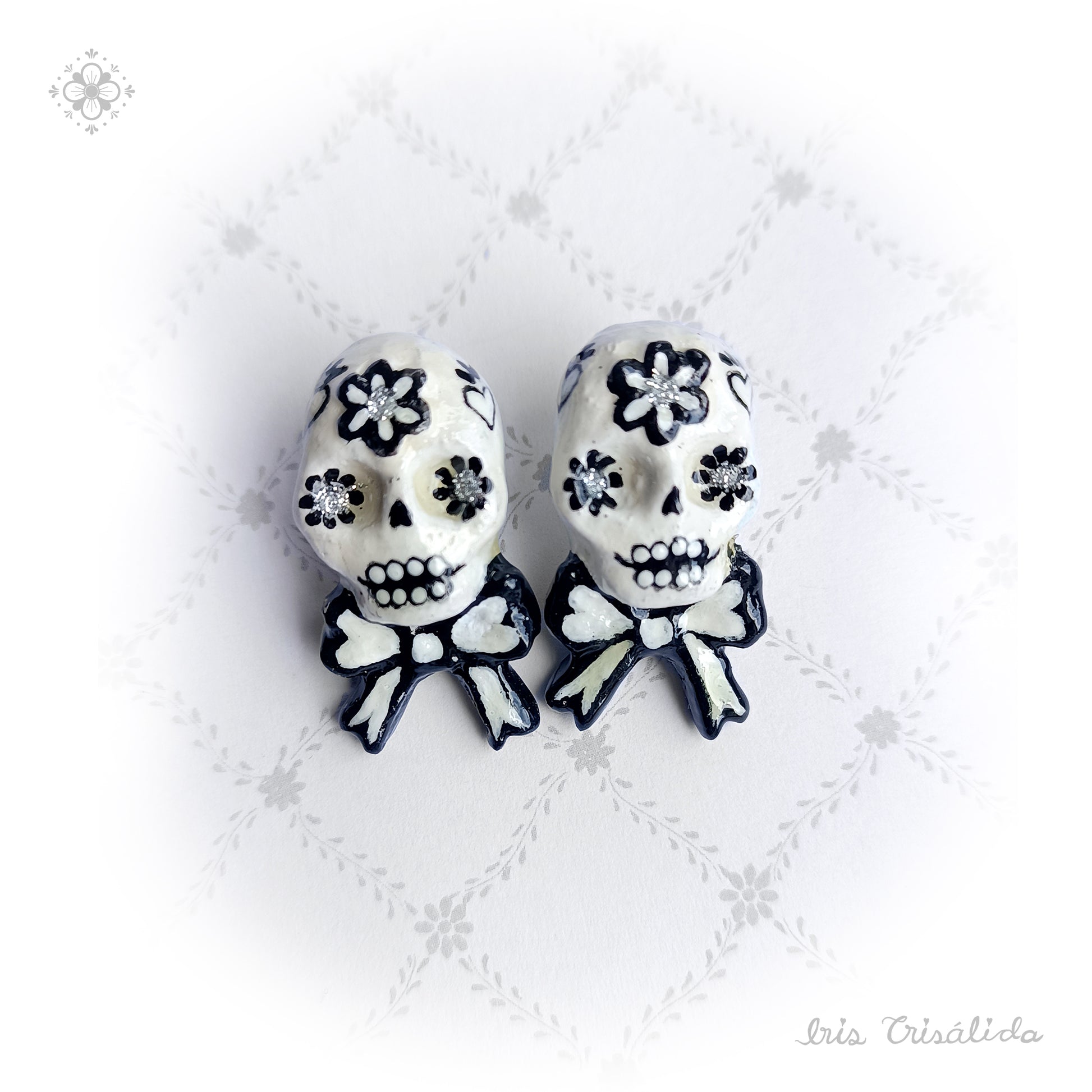 Two dear skulls, joyful and colorful, dying to adorn your ears. These papier-mâché earrings are designed to catch the eye.