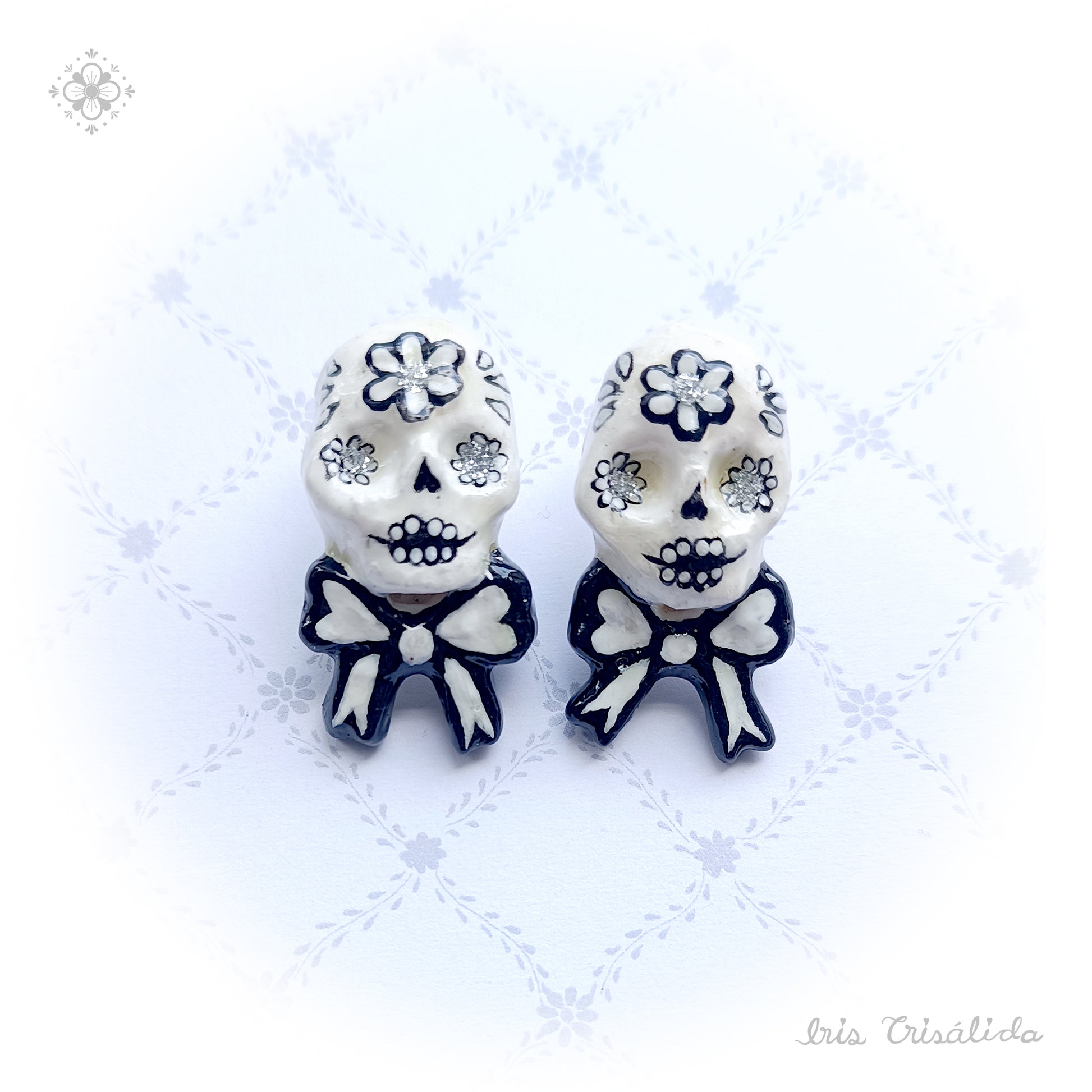 Two dear skulls, joyful and colorful, dying to adorn your ears. These papier-mâché earrings are designed to catch the eye.